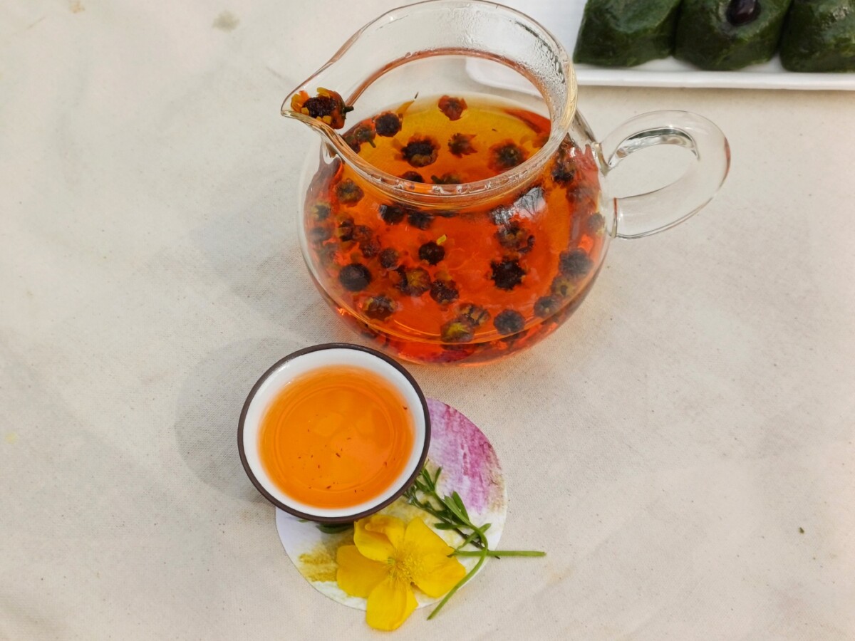 정성껏 준비한 히말라야 국화차를 마십니다.