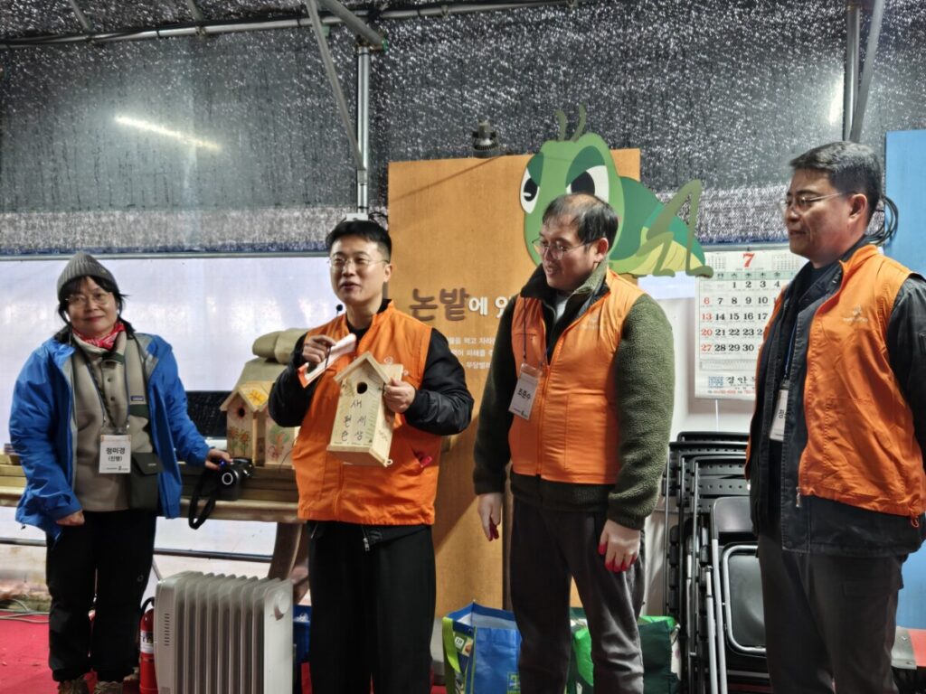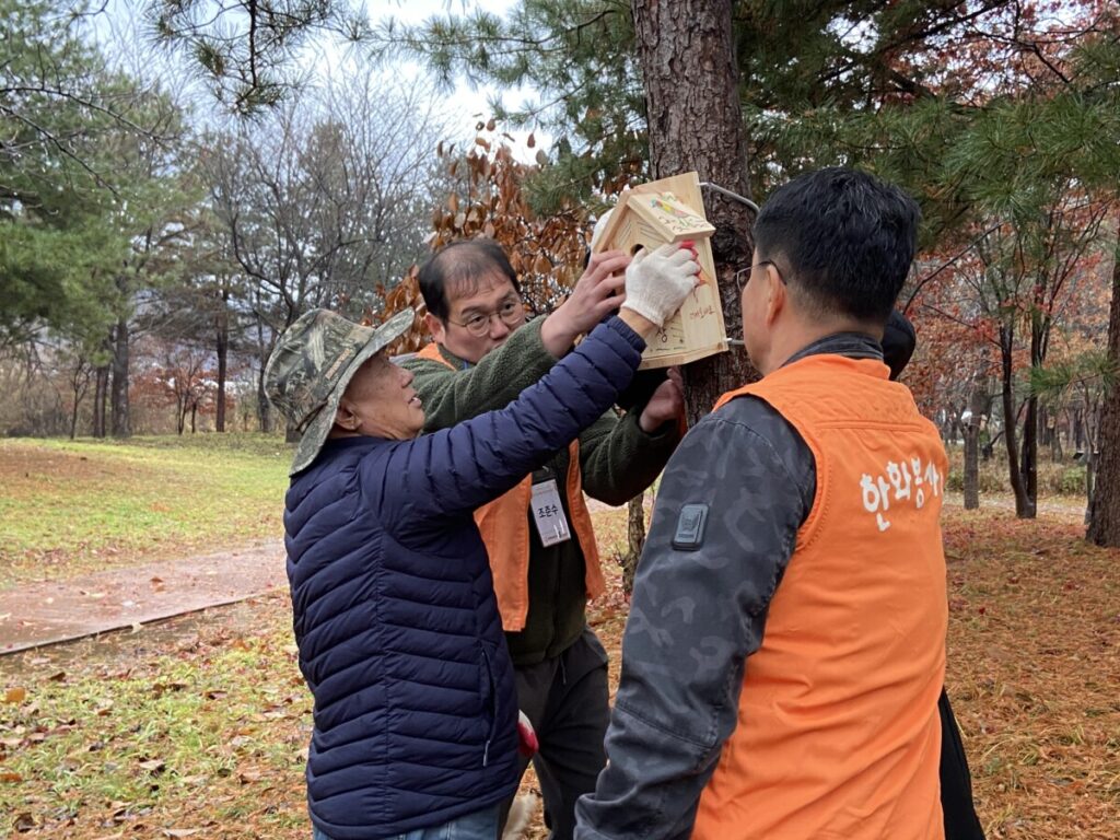 비 내리는 경안천습지생태공원에서 임직원들은 정성껏 새들의 보금자리를 만들었고, 이어 경안천을 찾은 큰고니를 만나 자연과 연결되는 시간을 가졌습니다.