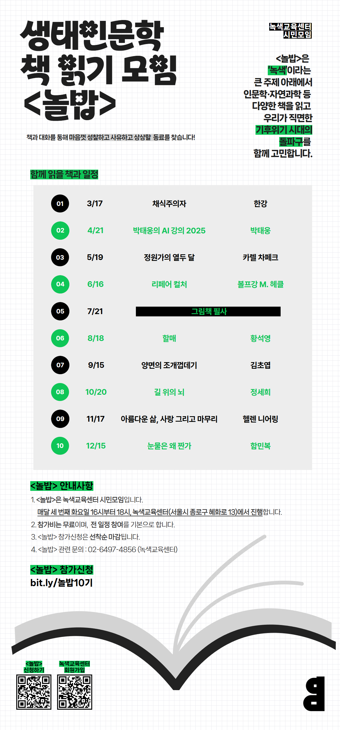 녹색교육센터 생태인문학 책 읽기 모임 <놀밥> 10기를 모집합니다.