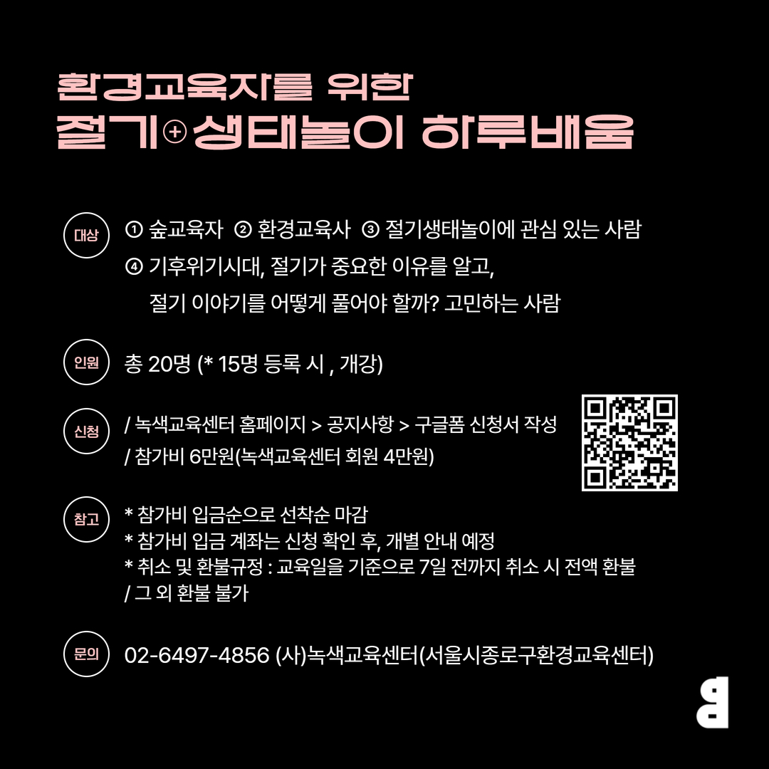 📌 문의 : 02-6497-4856 (사)녹색교육센터(서울시종로구환경교육센터)